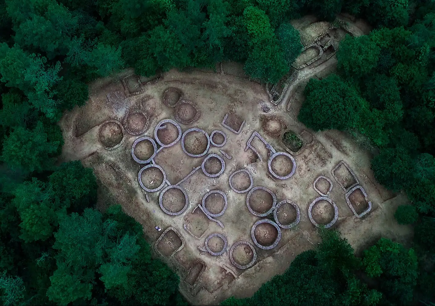 La mayoría de las construcciones de la croa son de forma circular y desempeñarían la función de viviendas. En ellas no se percibe el hueco de la puerta, que podría estar a una mayor altura de los muros conservados. Hay otras construcciones de forma rectangular con los esquinales redondeados, destinadas a otras finalidades. En el denominado Barrio Extramuros, situado al pie de la entrada, se descubrió una edificación ovalada, una fuente y una especie de horno, que hay quien la interpreta como una sauna.