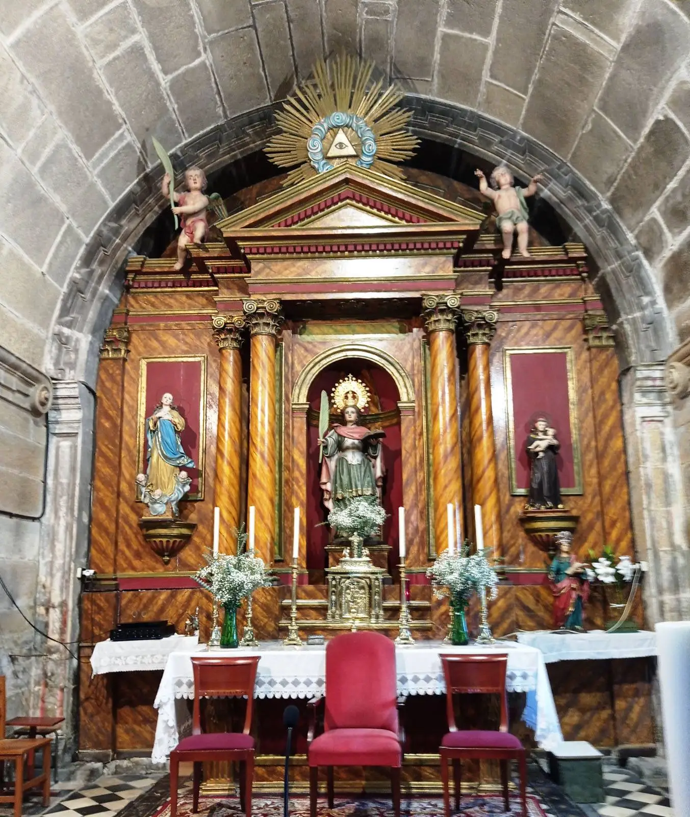 Este artístico hórreo forma un hermoso conjunto arquitectónico con la casa rectoral y el palomar. Al norte de él se sitúa la iglesia parroquial de Santa Comba, un edificio barroco, con planta de cruz latina, distribuida en tres naves. Data del año 1755 y en su interior conserva un interesante retablo mayor de estilo neoclásico, obra del escultor José Ferreiro.