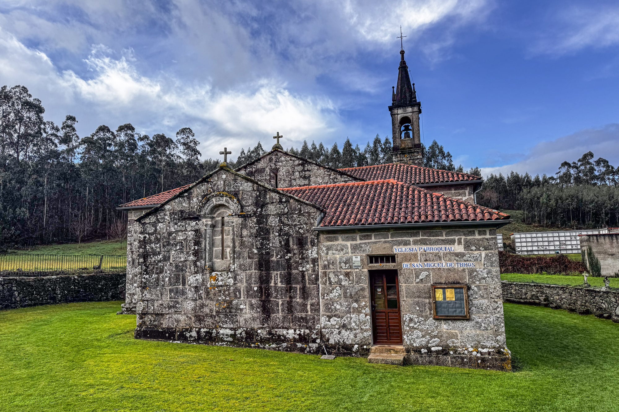 Treos is a quiet, rural stop in the municipality of Vimianzo, reached via small roads that feel made for unhurried exploring. The Church of San Miguel de Treos stands slightly apart from the village on a gentle rise, easy to spot and with the kind of presence that tells you it has anchored local life for generations. If your Costa da Morte route includes heritage and architecture, this is the sort of place that rewards a short detour.