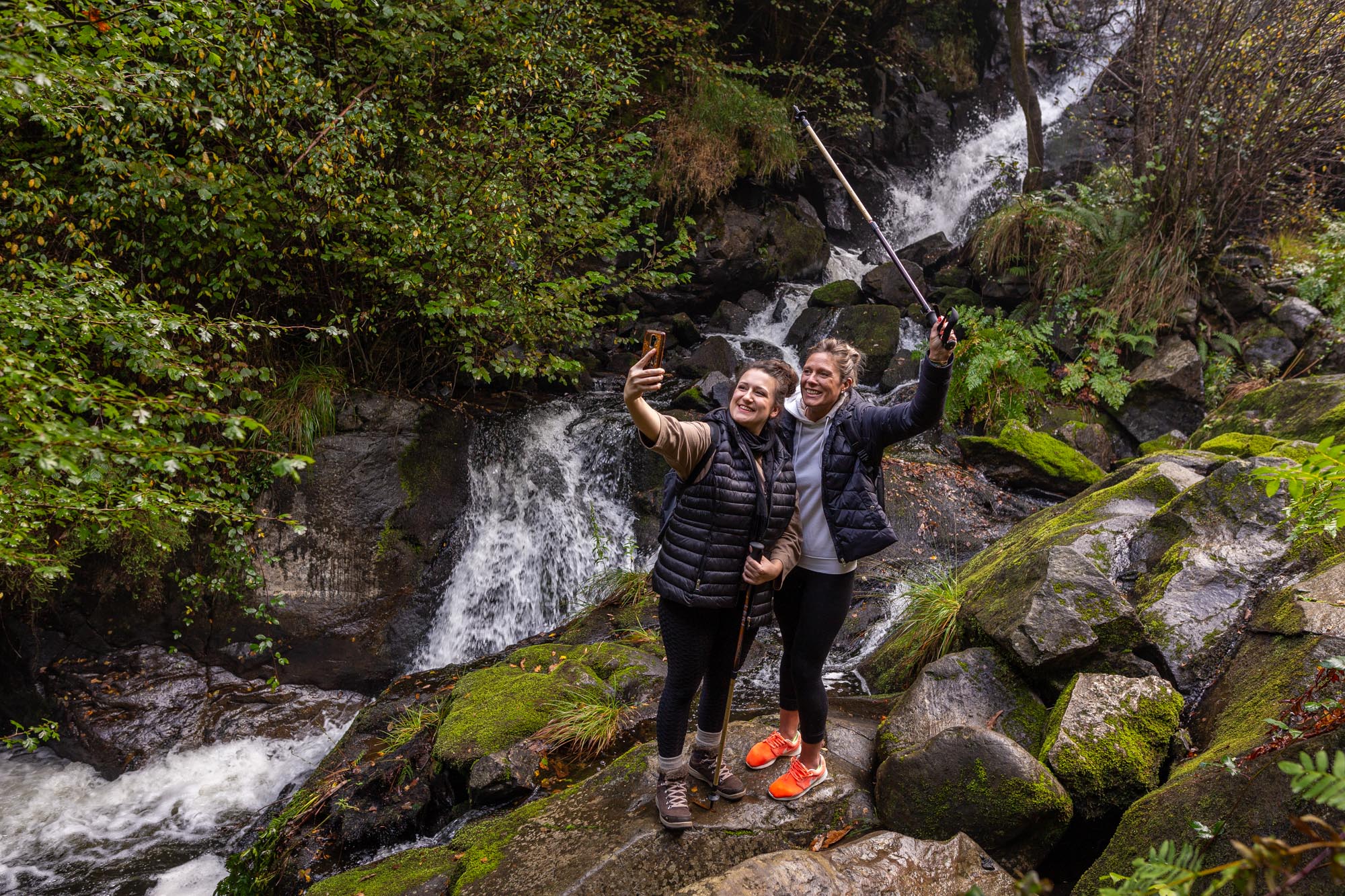 The route to San Paio Waterfall starts near the chapel of San Paio, which is also one of the access points to the PR-G 142 Ruta das Férvedas walking trail. From there, a signposted path leads visitors towards the waterfall, following the sound of the river through a peaceful wooded setting. Along the way, the landscape reveals old restored watermills and the remains of the former hydroelectric power station, built around 1915, which supplied the first electricity to the town of Carballo.