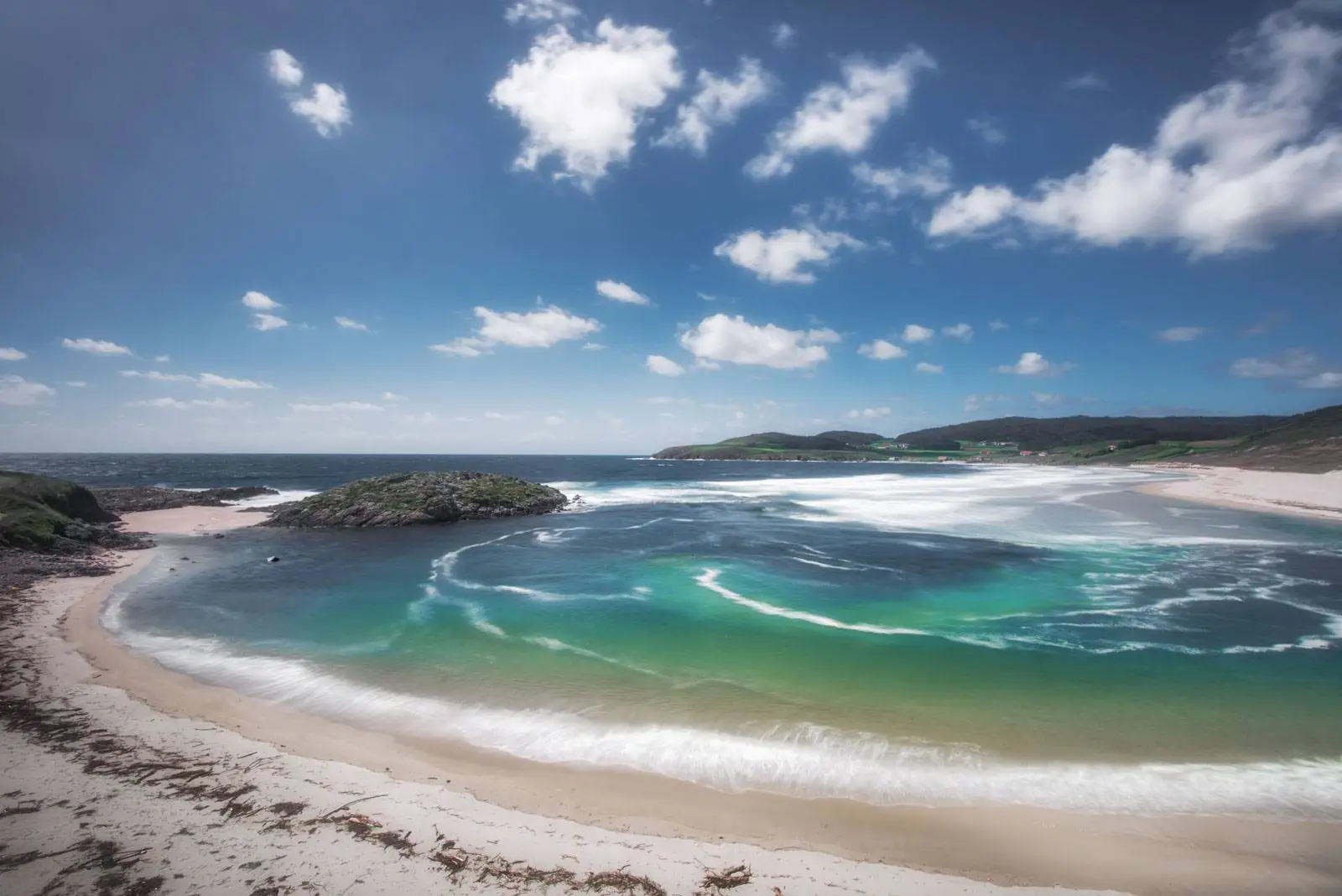 Entre o extremo sur da praia de Nemiña e a punta Mellón, ábrese paso ao océano a pequena ría de Lires, que máis que ría, vén sendo os esteiros que forman os ríos Castro e Lires na súa desembocadura. O río Castro é a arteria fluvial máis importante da comarca de Fisterra, a antiga Nemancos. Nace na parte alta da parroquia de Castrelo (Vimianzo), e despois de pasar Berdoias, rega as terras de Muxía, Dumbría e Cee e marca os límites entre estes concellos. O seu nome procede do lugar do Castro (Coucieiro, Muxía), onde forma a fervenza das Caldeiras do Castro, un espazo natural de enorme beleza. Despois dun sorprendente xiro cara ao oeste, desemboca na ría de Lires.