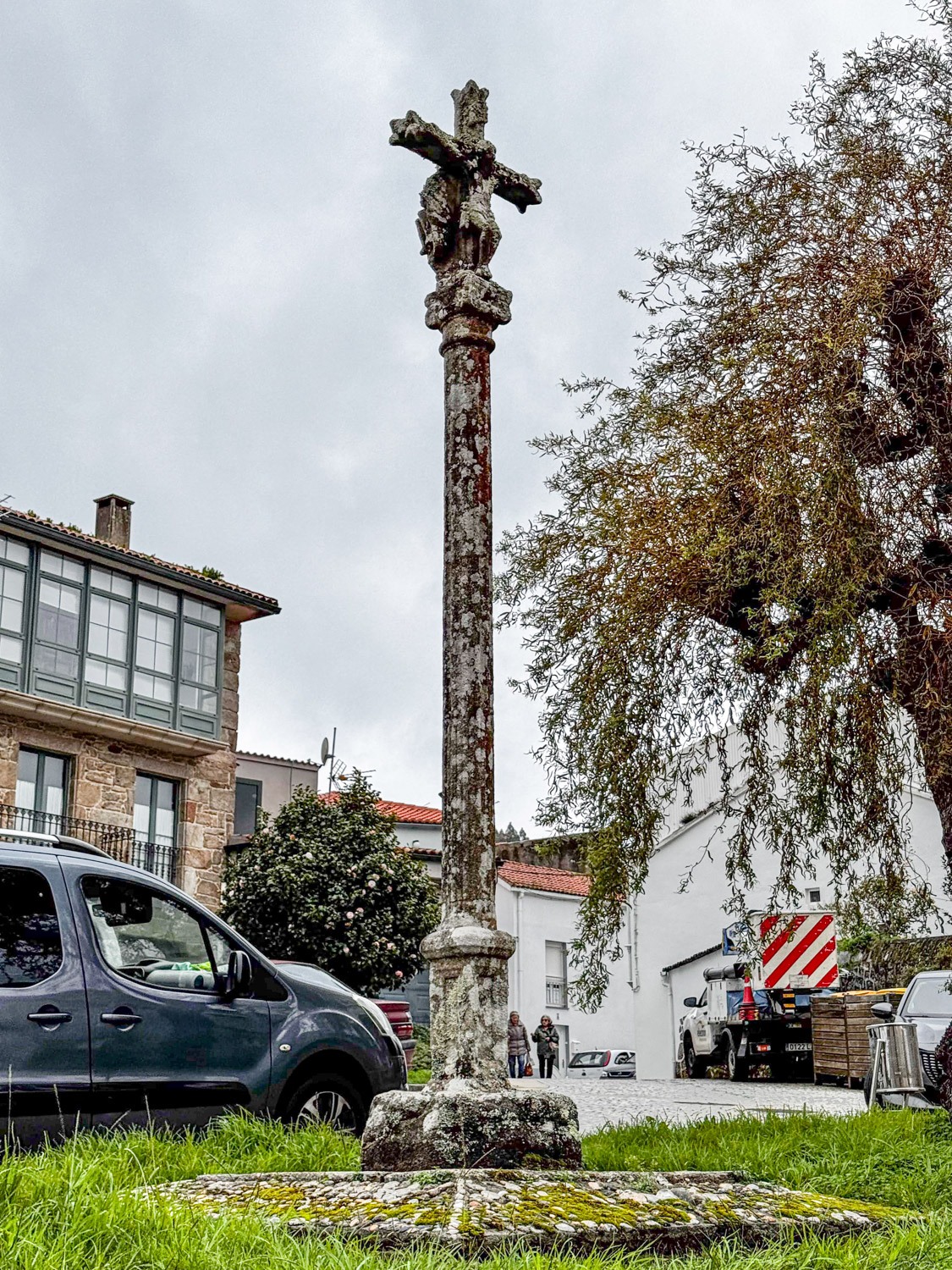 El Cruceiro de San Marcos se levanta en el atrio de la Iglesia de San Marcos de Corcubión, en pleno corazón de la Costa da Morte, y es una visita imprescindible para quien desee conocer la esencia de este pequeño puerto marinero. Este cruceiro de granito de tipo crucifijo, integrado en el patrimonio etnológico del municipio, da la bienvenida a vecinos, peregrinos y visitantes con la calma de las piedras centenarias, invitando a detenerse unos minutos y disfrutar del ambiente de la plaza y del casco histórico.