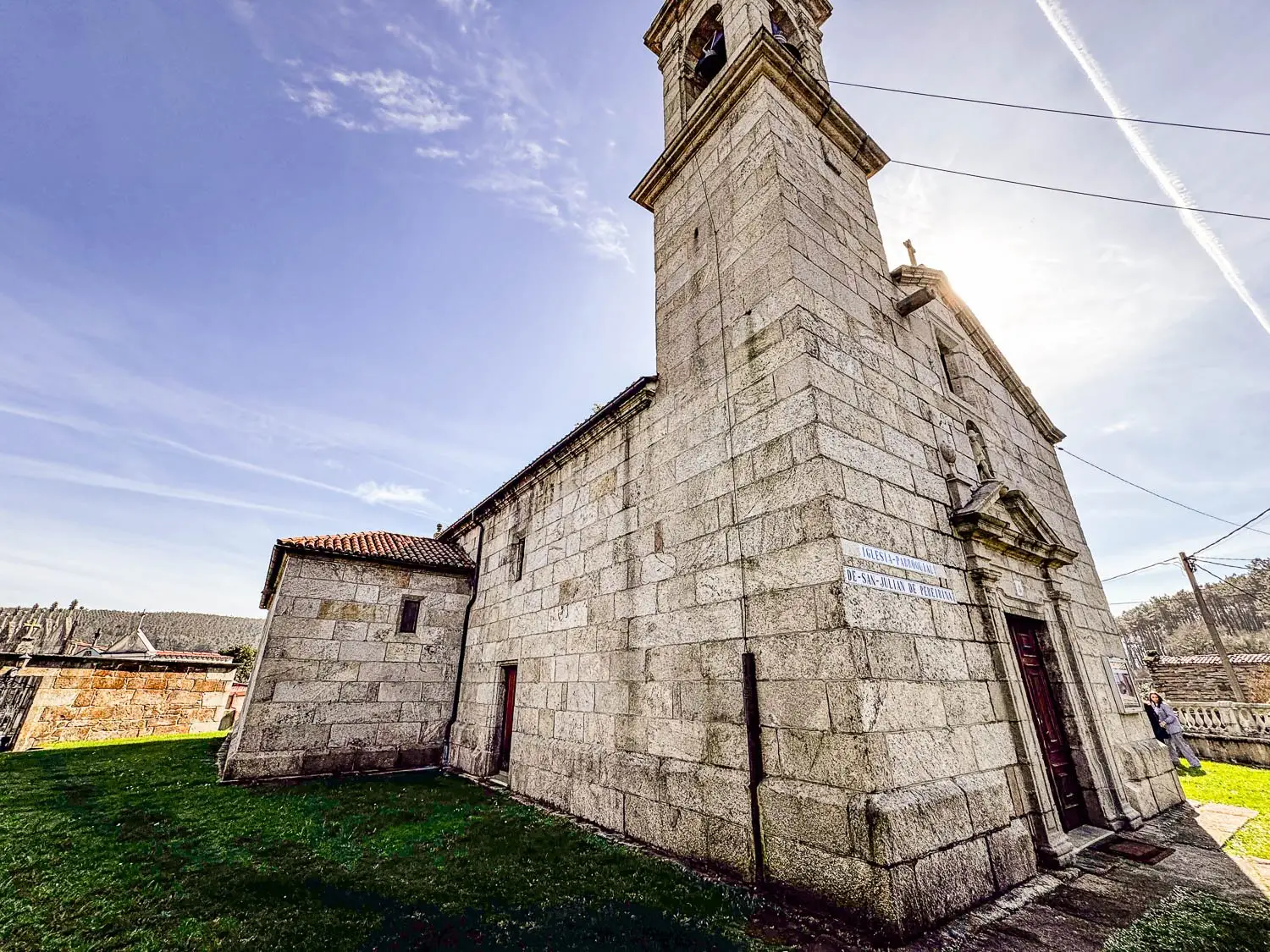 La Iglesia de San Julián de Pereiriña, en la parroquia de Pereiriña (Concello de Cee), se asienta sobre un promontorio natural que domina el valle en dirección al mar. Su presencia en el paisaje es inconfundible: un templo de planta de cruz latina con nave generosa y capilla mayor cuadrada, pensado para ser referencia visual y punto de encuentro de la comunidad.