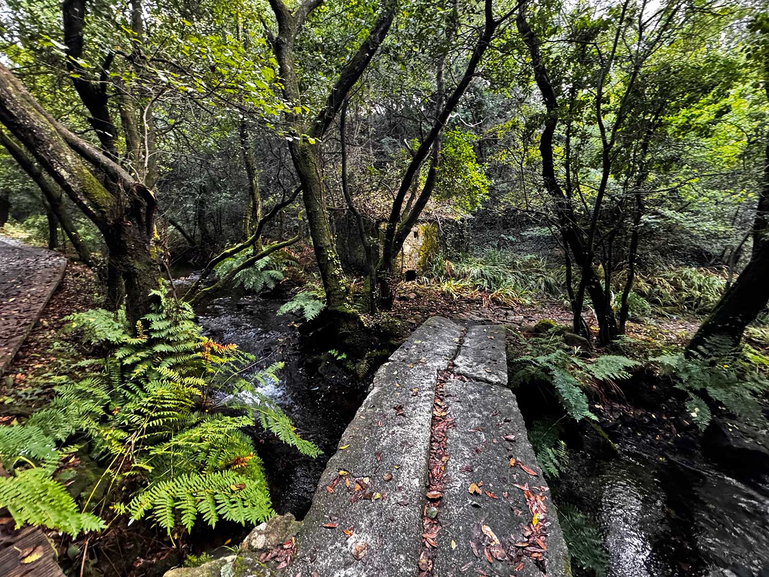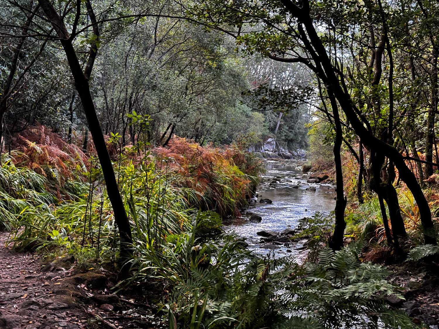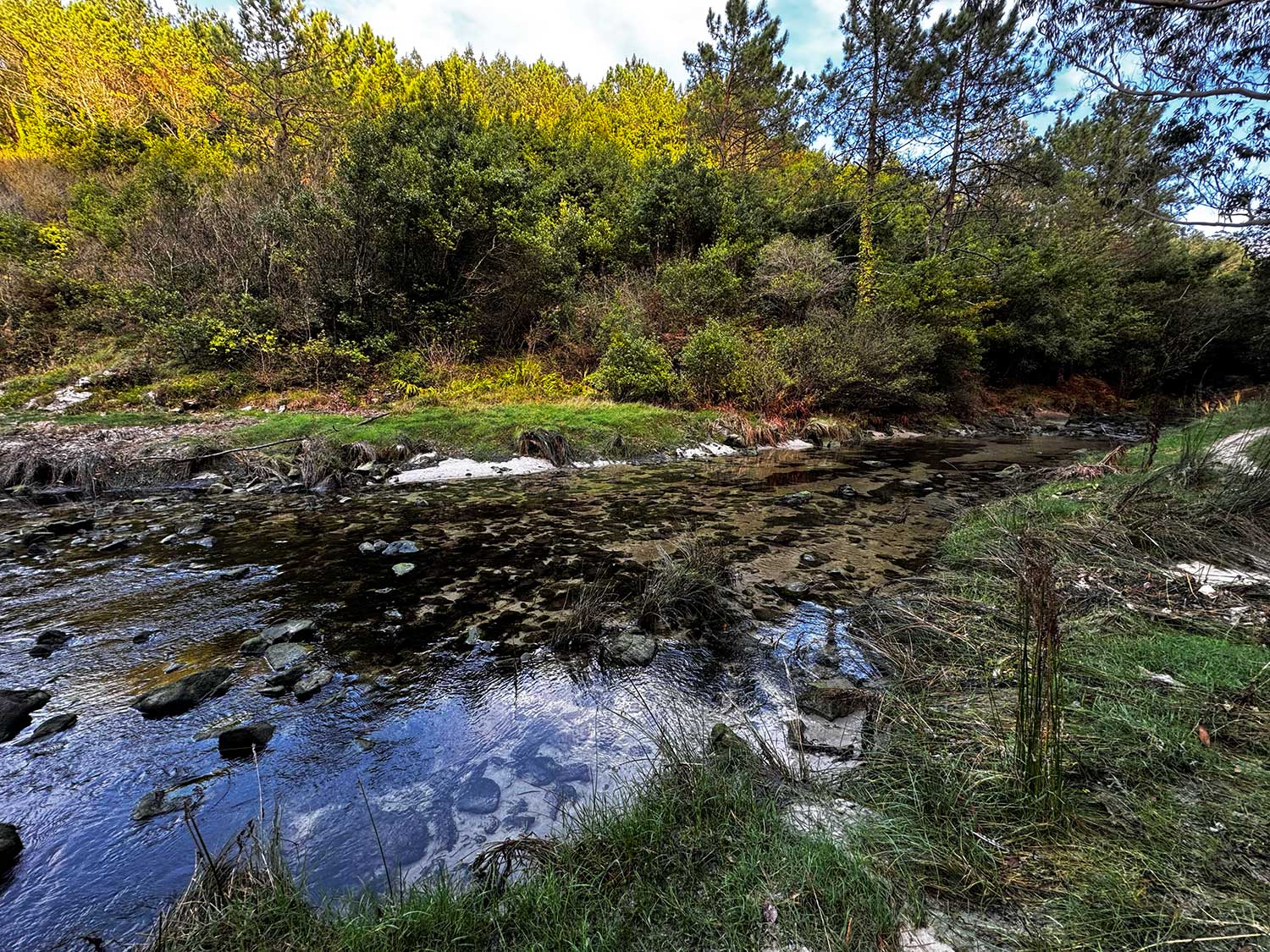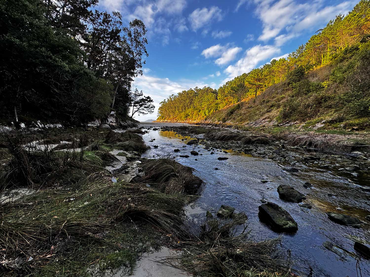 El paseo fluvial del río Negro es una de las rutas más encantadoras del municipio de Muxía, situado en la parroquia de Moraime, concretamente en la aldea de Os Muíños. Su nombre no es casualidad: a lo largo del recorrido descubrirás un valioso conjunto etnográfico compuesto por diecisiete molinos restaurados, auténticas joyas de la arquitectura popular gallega que nos hablan de la historia y el modo de vida tradicional de la zona.